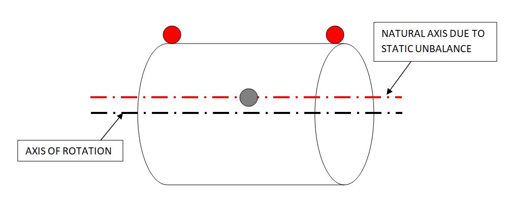 A rotor has axes around which it “naturally prefers” to rotate usually called the principal axes. Intuitively, they are axes which pass through the center of mass and the mass distribution around these axes are uniform and symmetrical. A physical rotor has a physical axis of rotation,i.e. engineered axis obtained through machining processes. However due to the non uniformity in mass distribution of the rotor, the physical axis of rotation and the principal axis do not coincide. Because of the non co-incident axes, now the mass distribution around the real-life axis of rotation is non uniform. This non uniformity in mass is quantified and shows up as an unbalance of the rotor.